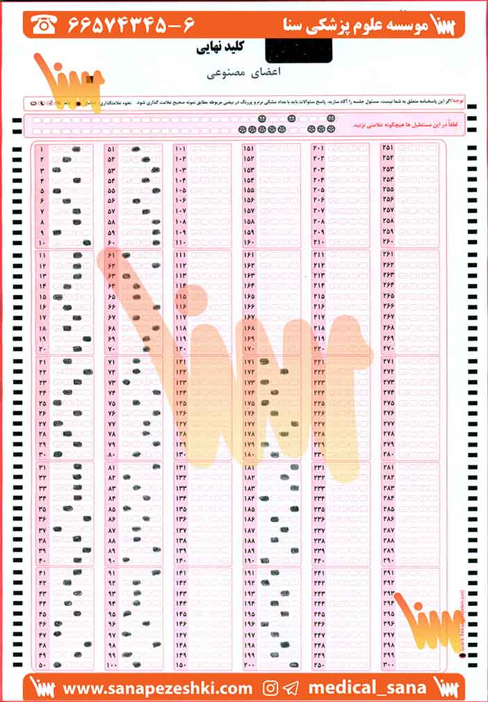 دانلود کلید نهایی سوالات دکتری اعضای مصنوعی99-1400