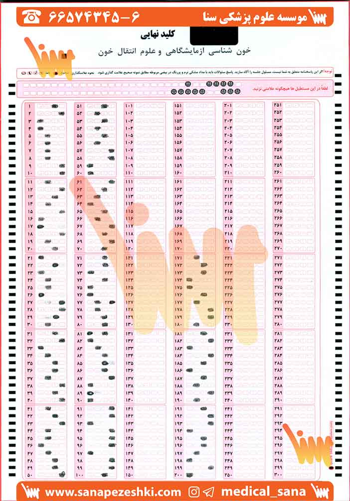 دانلود کلید نهایی سوالات دکتری خون شناسی-علوم انتقال خون99-1400