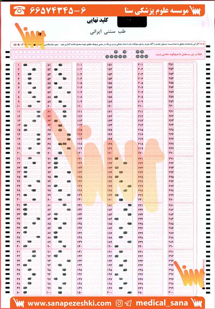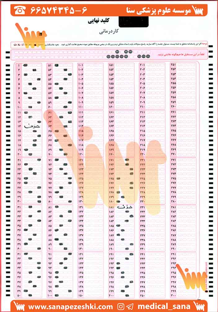 دانلود کلید نهایی سوالات دکتری طب سوزنی99-1400