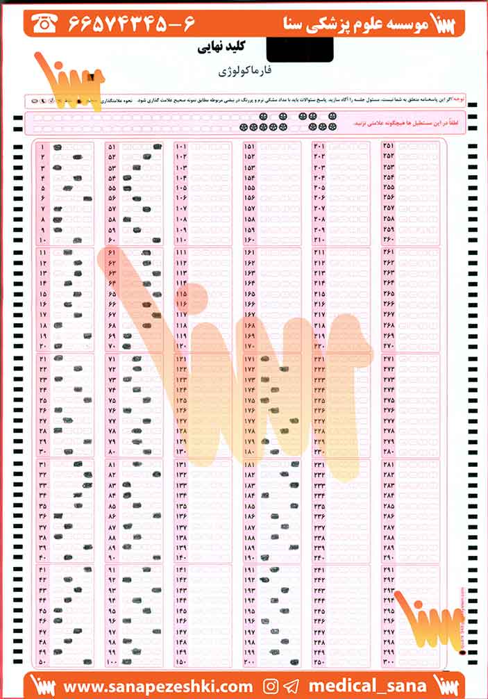 دانلود کلید نهایی سوالات دکتری فارماکولوژی99-1400