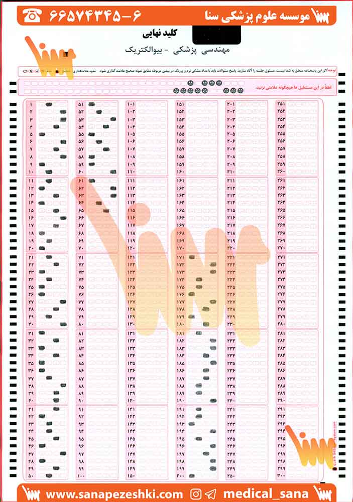 دانلود کلید نهایی سوالات دکتری مهندسی بیوالکتریک99-1400