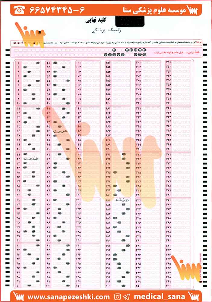 دانلود کلید نهایی سوالات دکتری ژنتیک پزشکی 99-1400