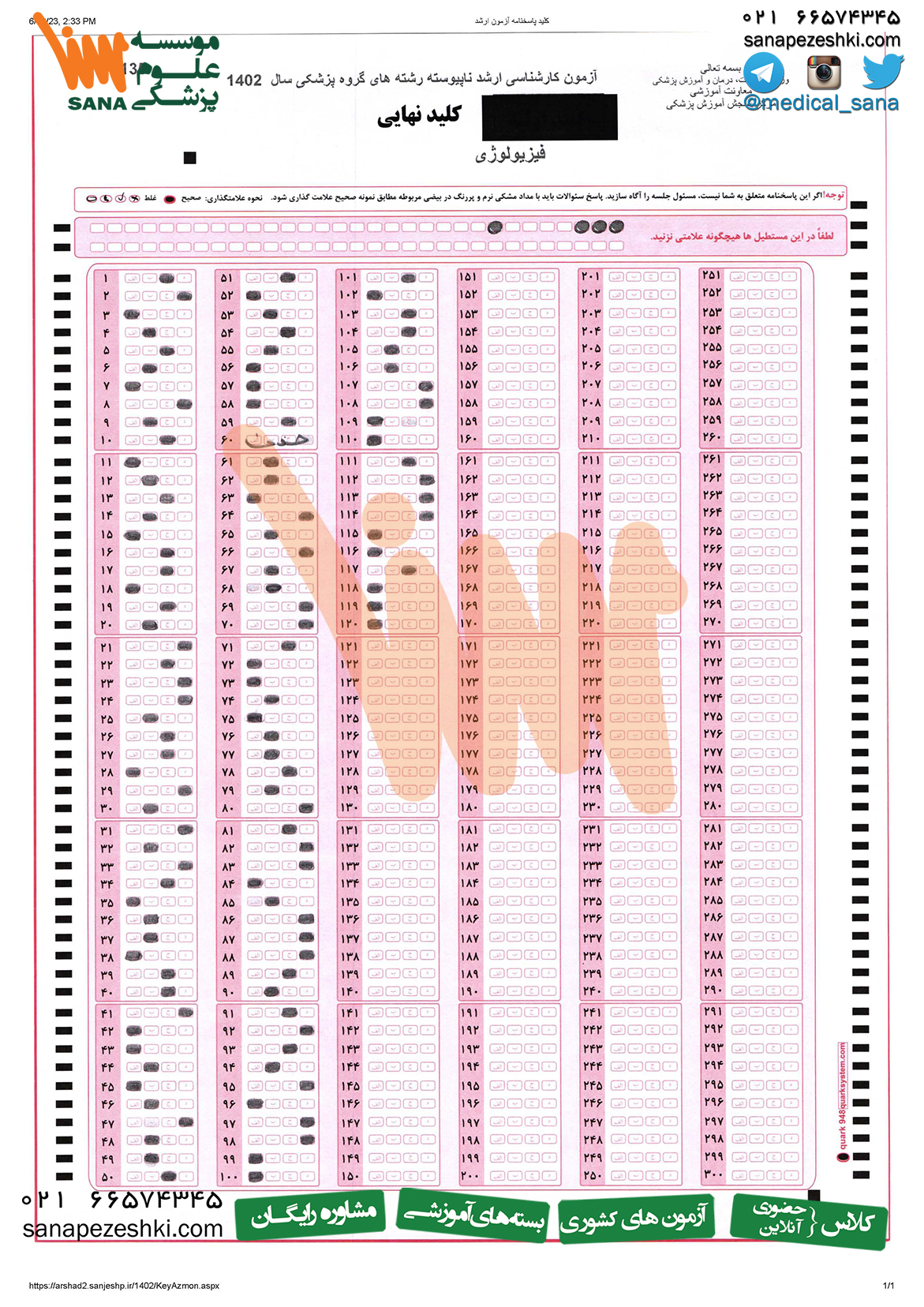 یکی از مهم ترین مسائلی که ذهن شما داوطلبای رو درگیر کرده داشتن دفترچه سوالات آزمون هست. همونطور که می دونید بعد از آزمون دفترچه سوالات به همراه پاسخ نامه از داوطلب گرفته میشه بنابراین دسترسی به دفترچه سوالات چندان راحت نیست. تو این مقاله دفترچه سوالات ارشد فیزیولوژی رو براتون گذاشتیم. پاسخ کلیدی هم تو مقاله دانلود کلید سوالات ارشد وزارت بهداشت هست. اگر متقاضی شرکت تو آزمون ارشد وزارت بهداشت هستی و سوالی در رابطه با منابع داری یا می خوای با رتبه برتر این رشته صحبت کنی می تونی با مشاورین سنا در ارتباط باشی یا با تلفن دفتر تماس بگیری....